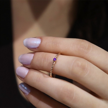 Destul de dificil sa nu cazi in mrejele acestui inel minimalist Cabaret Violet Tourmaline Ring din aur cu pietre in nuante electrizante. Poarta-l pe jumătatea degetului sau suprapus ,alaturi de alte inele si vei lua cu asalt trendurile.